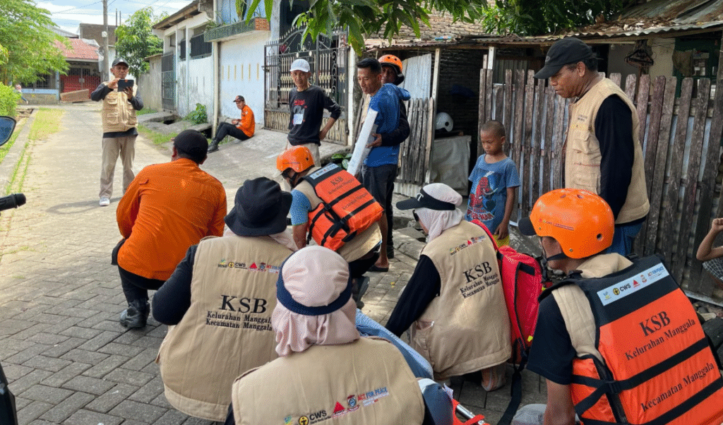 Simulasi dimulai dengan briefing kesiapsiagaan bagi warga dan Tim Kampung Siaga Bencana (KSB). Dengan jumlah peserta yang mengikuti simulasi sebanyak 300 orang dari 4 kelurahan yang mempelajari prosedur tanggap darurat, komunikasi bencana, serta langkah-langkah Aksi Antisipatif untuk meminimalkan risiko banjir. Dalam sesi ini juga dilakukan pengenalan dan uji coba Early Warning System (EWS, yaitu sistem peringatan dini berbasis komunitas, agar masyarakat dapat merespons ancaman bencana dengan lebih cepat dan tepat.